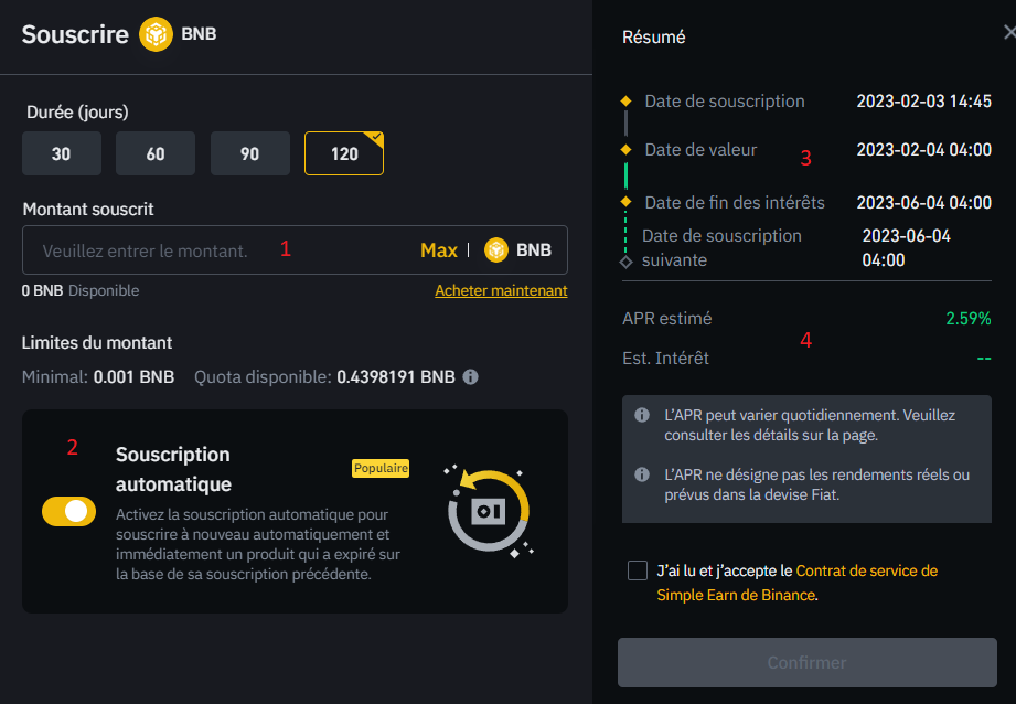 Binance calcule une estimation de vos intérêts à la fin de votre souscription.