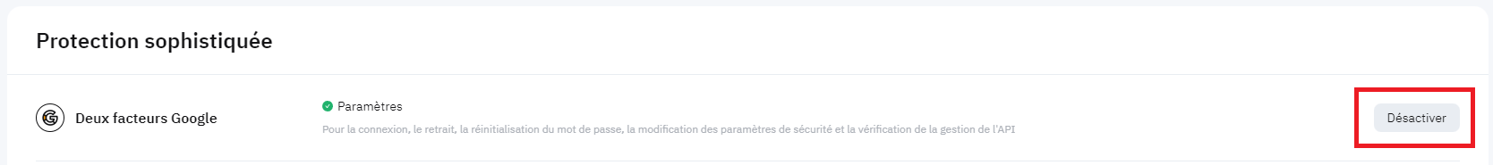 Descendez la page pour atteindre « Deux facteurs Google » dans la rubrique « Protection sophistiquée« .