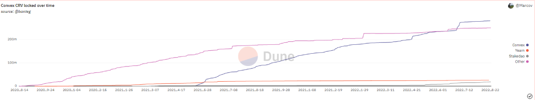 Aujourd’hui Convex Finance fait partie des grands gagnants de ces curve wars puisque le protocole détient plus de la moitié des CRV en circulation avec près de 300 millions de CRV bloqués dans son protocole