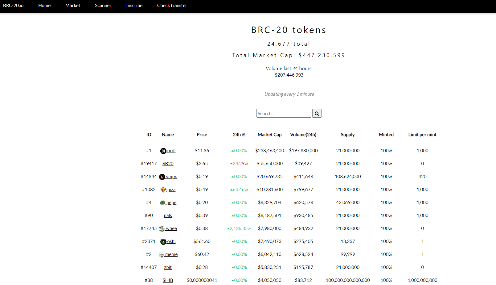 Pour avoir la liste complète, rendez-vous sur BRC-20.io.